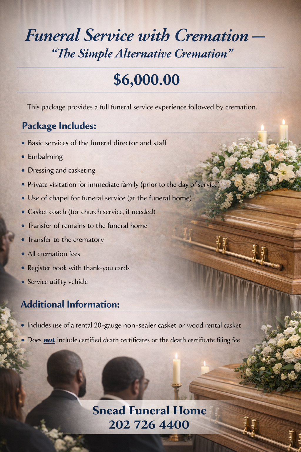 If you are looking for a trusted funeral home in Washington, D.C., Snead Funeral Home and Cremation Service is honored to serve you.